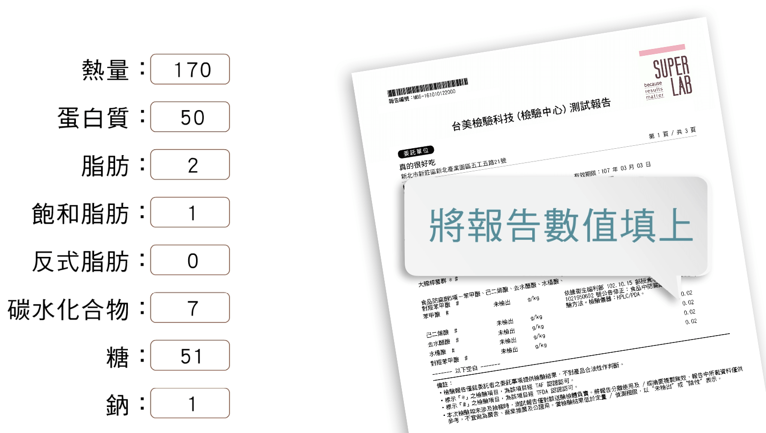 2. 輸入每 100 公克的檢驗數值