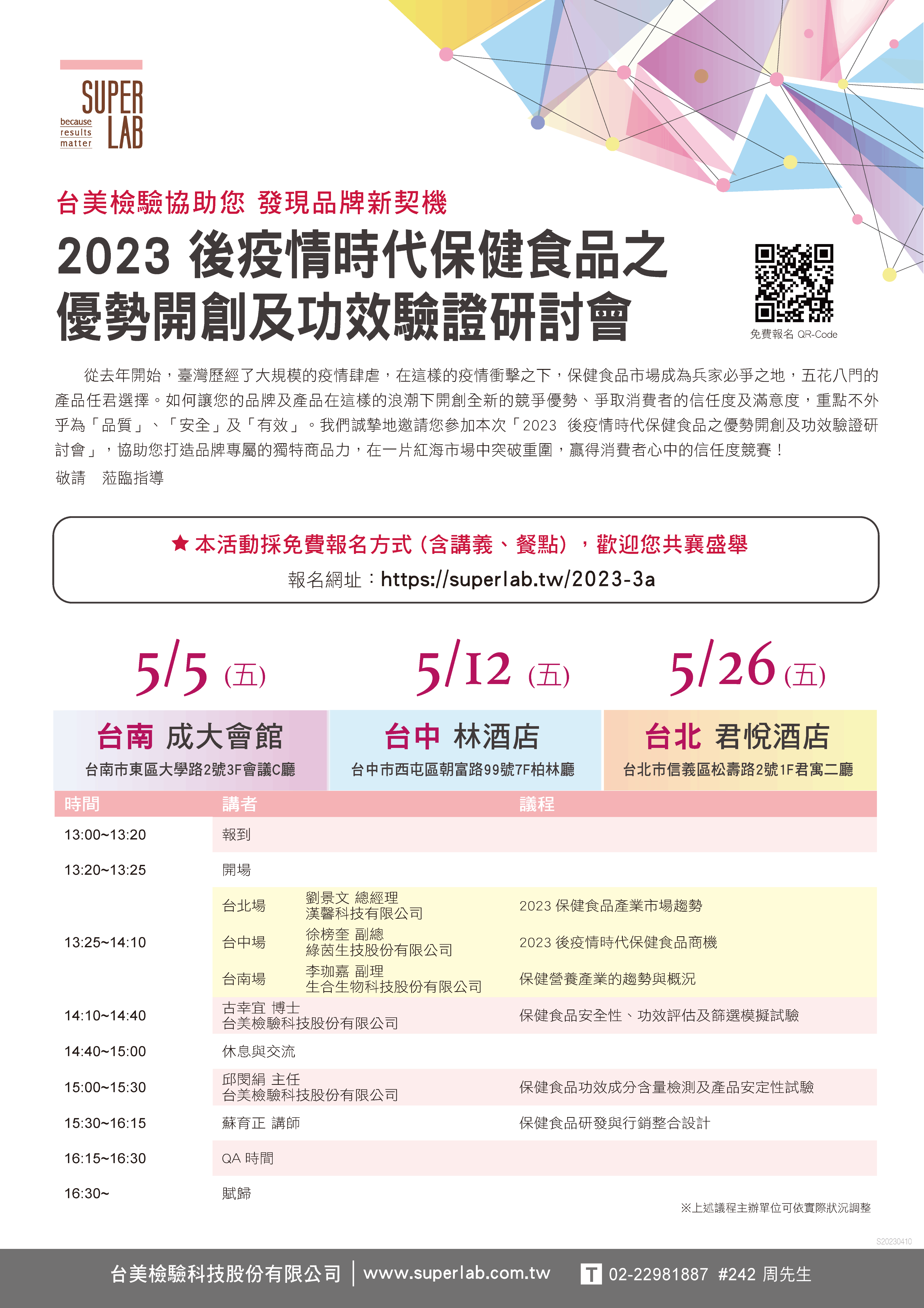 2023 後疫情時代保健食品之優勢開創及功效驗證研討會