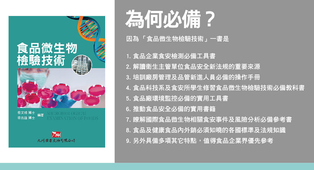 以上摘自 「食品微生物檢驗技術」第 43 章「食品廠環境的微生物監控」第一節,本章節共有七小節: