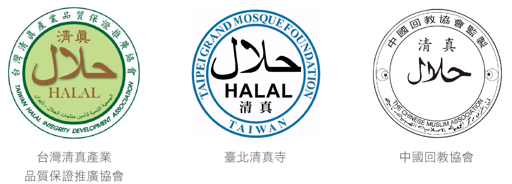 • 台灣清真產業品質保證推廣協會 (THIDA):服務範圍包含清真食品、生鮮農產及清真美妝品等,主要認證國際出口之製造業。