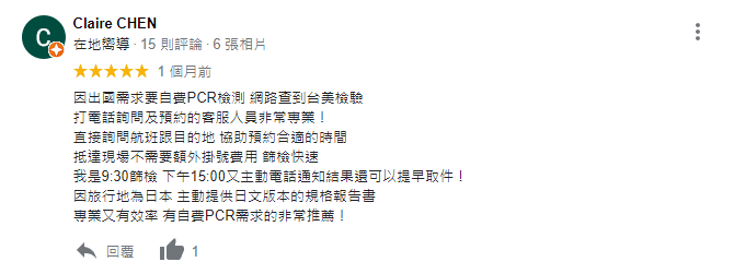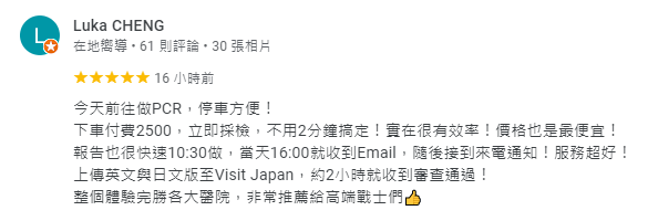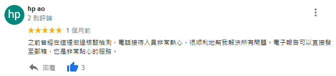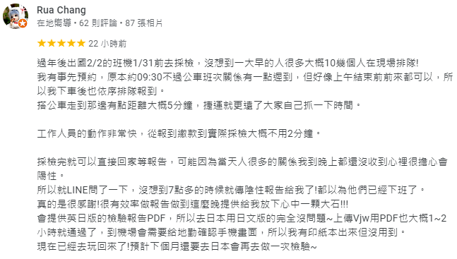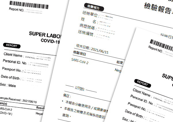 除了中文的篩檢報告之外,我們還提供英文版的新冠肺炎檢驗報告,方便出國使用。