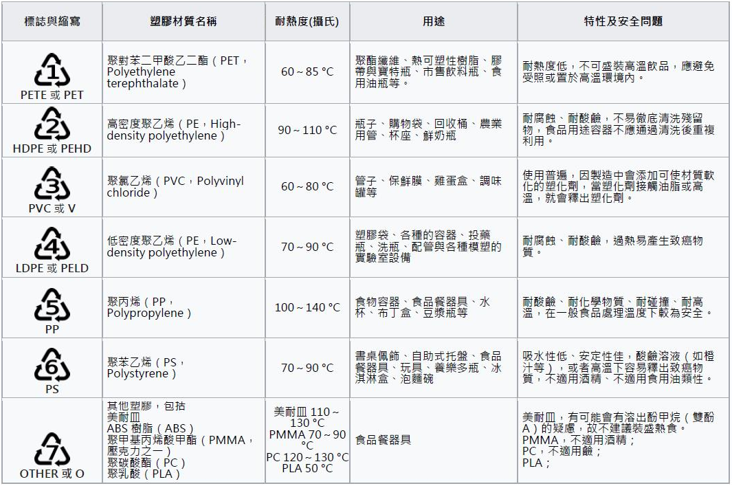 塑膠容器材質分類