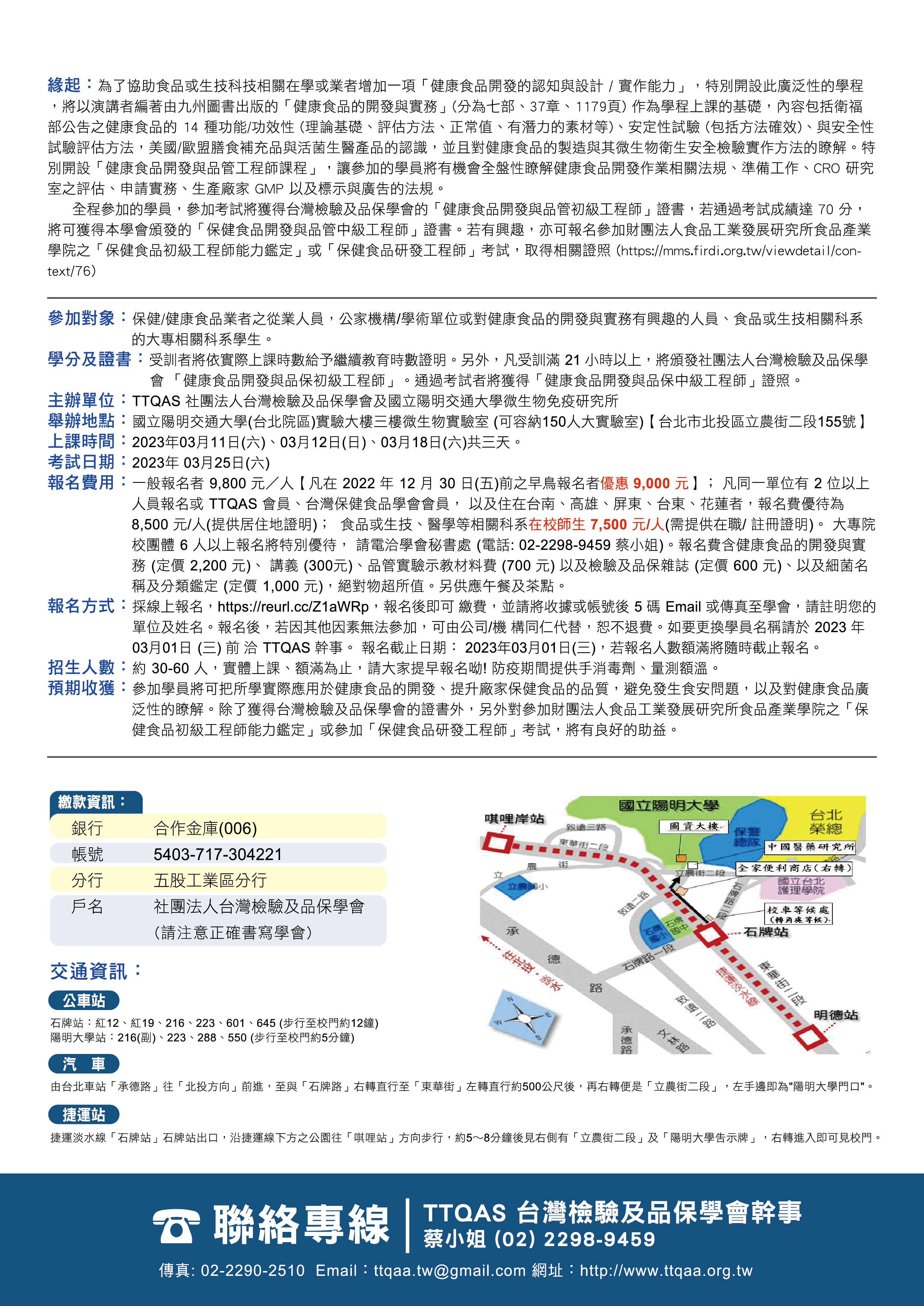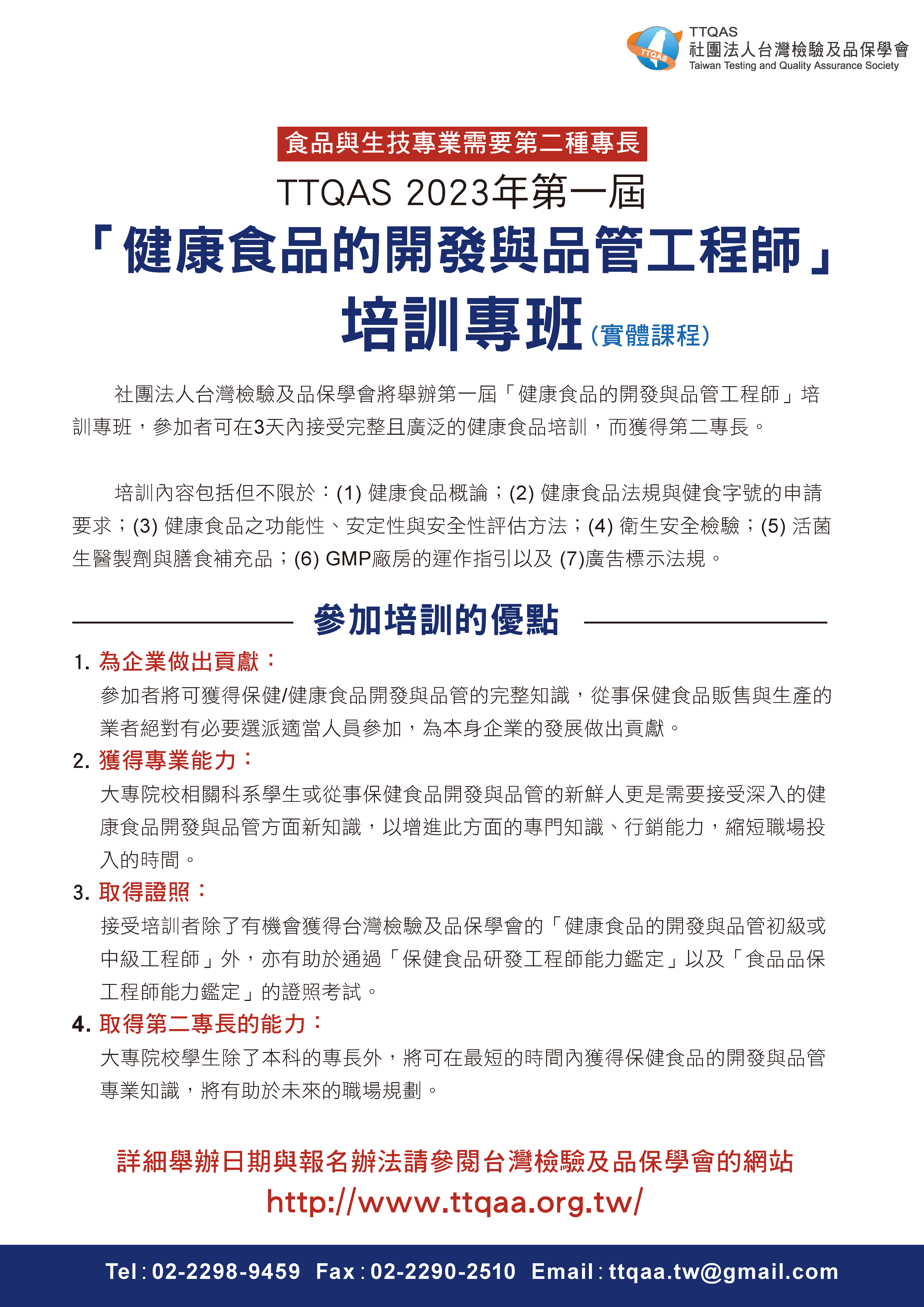 聯絡窗口:TTQAS 社團法人台灣檢驗及品保學會 秘書處 02-2298-9459 蔡小姐