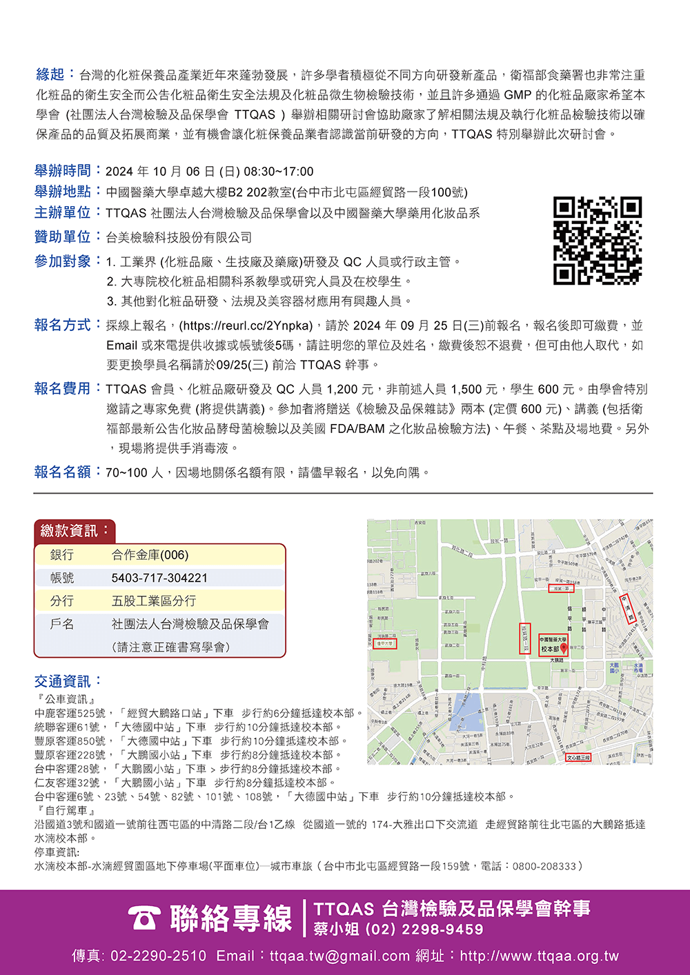 TTQAS 2024 化妝品趨勢與衛生安全研討會 2024年10月06日(日)